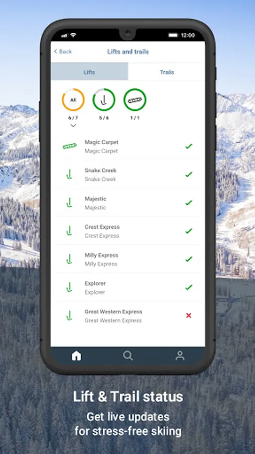 Within the app, you can check lift and run status, find current weather and snow conditions, and view a trail map to find where you are within the resort. You can also purchase lift tickets or browse resort services and restaurants.