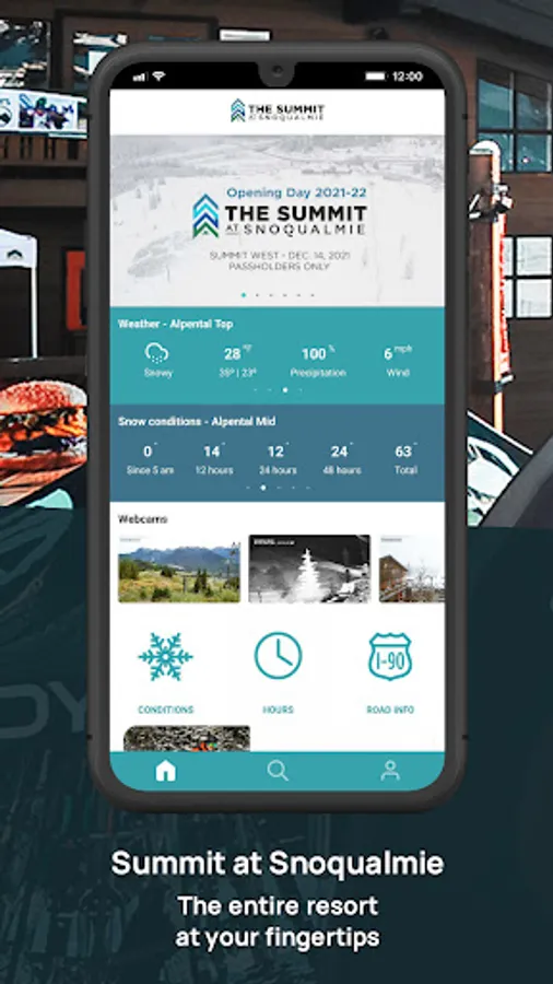 Get information and updates from The Summit at Snoqualmie right at your finger tips with The Summit mobile app. Featuring chairlift and trail status, trail maps, resort web cams, current weather and snow conditions, road status and conditions, upcoming events, the latest news, and much more!