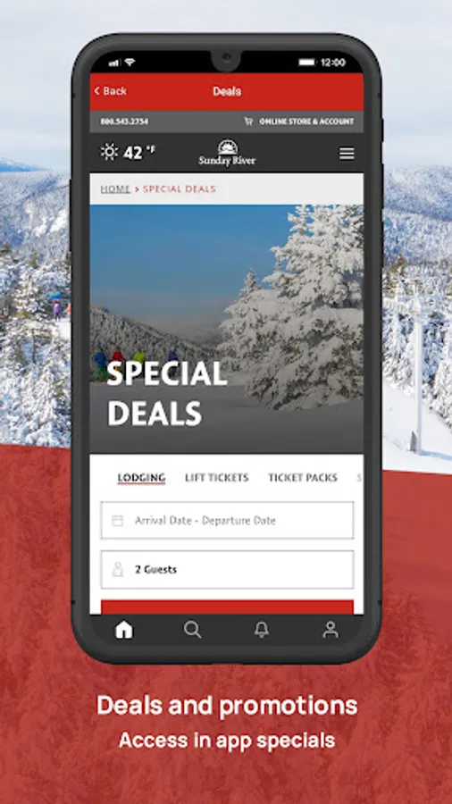 While at the resort, you can use the app to score special deals, track your ski runs via GPS, get real-time updates on lift and trail status, check restaurant and shopping availability, order food online, and much more.