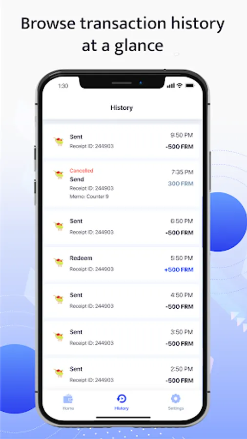 - Easily access and keep track of all transactions with a comprehensive history record.