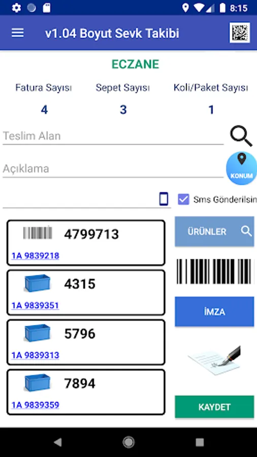 It is prepared for tracking baskets and invoices from Selçuk Ecza and As Ecza Warehouses to the pharmacy.