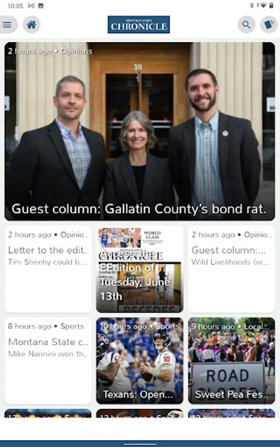 This is a digital replica of the printed Bozeman Daily Chronicle. The Bozeman Daily Chronicle EE now includes both LIVE NEWS and the replica edition of your local newspaper. This app is part of your all access membership. If you have questions about using the app please contact us at 406-587-4491 or mtservice@apgwest.com