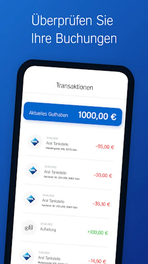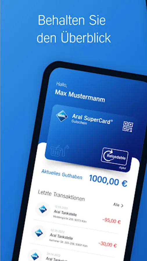 Bezahlen mit der Aral SuperCard Reloadable ist jetzt noch einfacher: Die Aral SuperCard Reloadable App ermöglicht bequemes mobiles Bezahlen und ist so die optimale Ergänzung zur wiederaufladbaren Gutscheinkarte von Aral. Gleichzeitig bietet das integrierte Dashboard jederzeit einen Überblick über aktuelles Guthaben und erfolgte Transaktionen.
