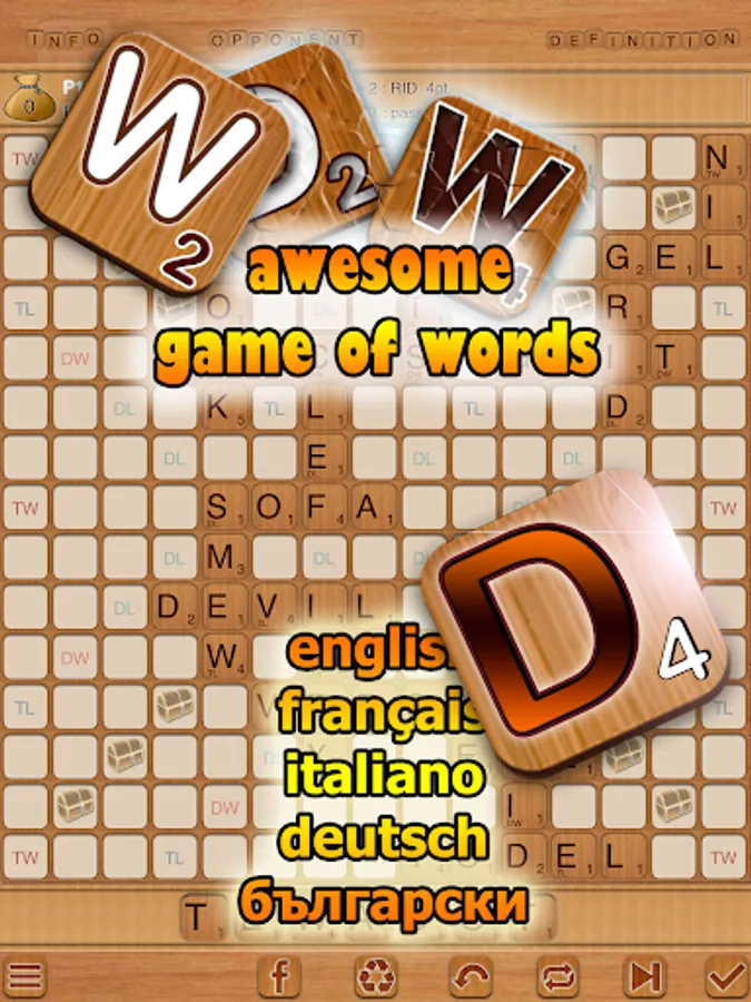 This words game is a great time killer for all fans of board games and strategy games. It is also an educational game that will allow kids (and adults :-) ) to improve their spelling and vocabulary.