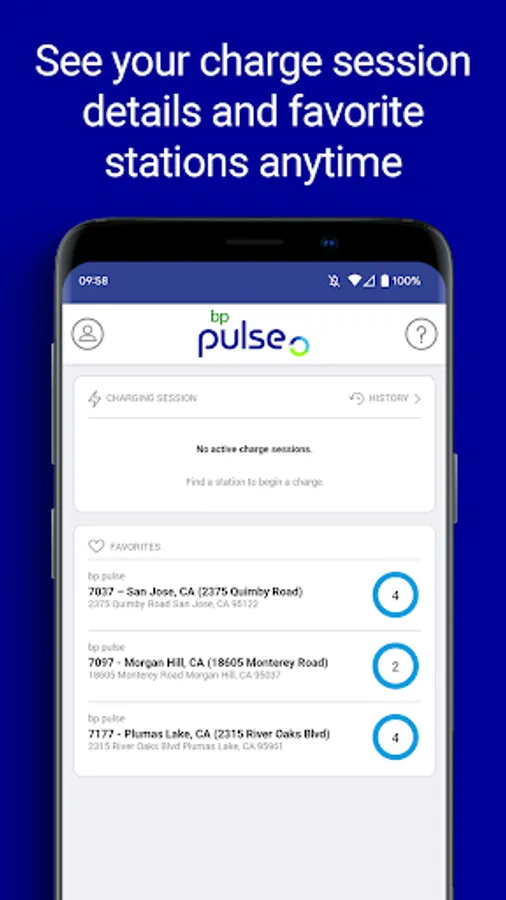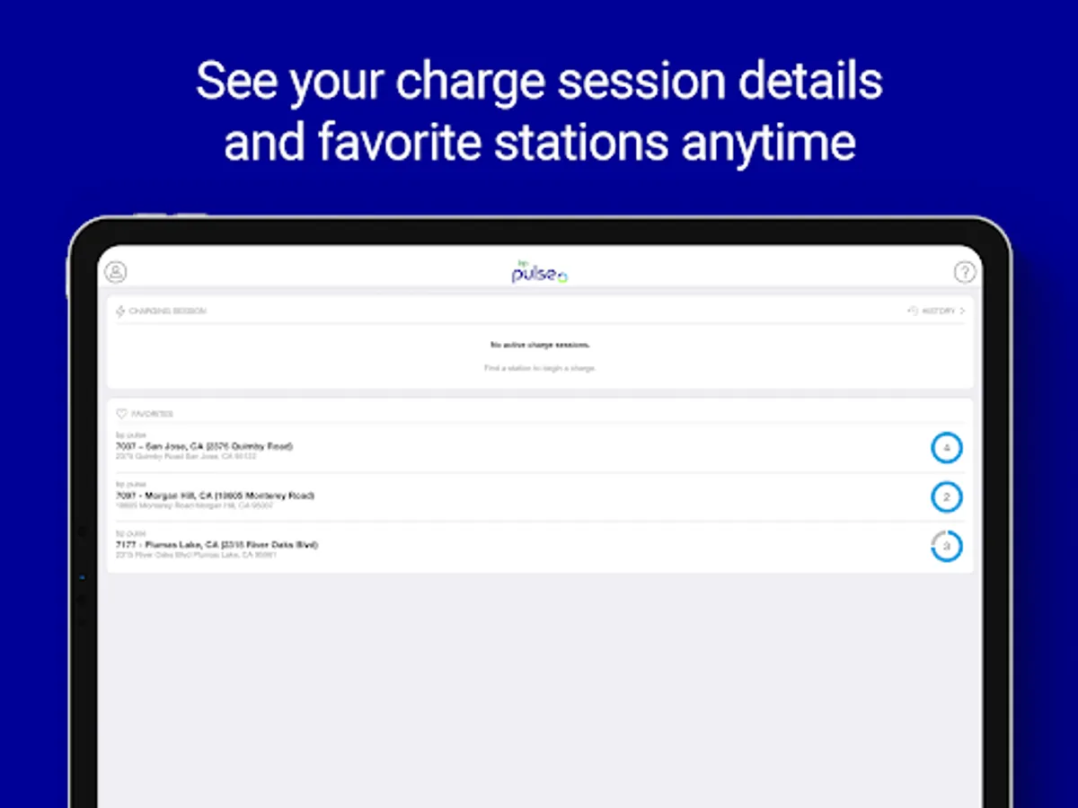 • See your charge history: Access your charge session details and favorite stations details anytime