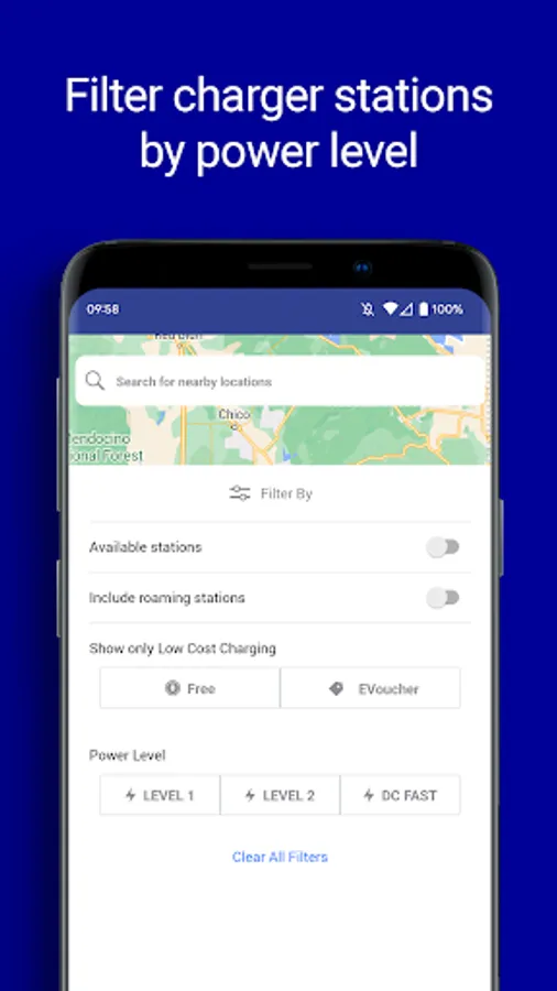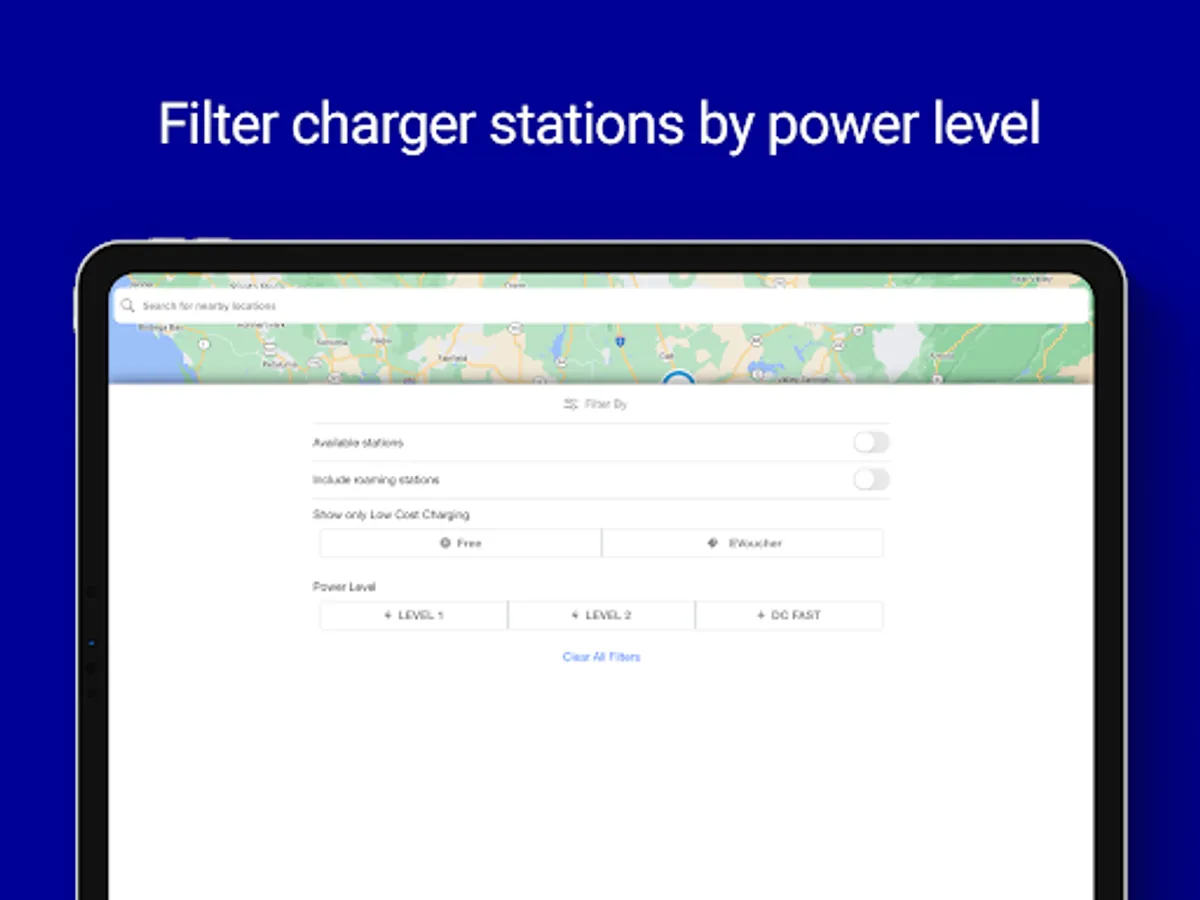 • Customize your EV charging: Filter charging stations by connector type and charger speed