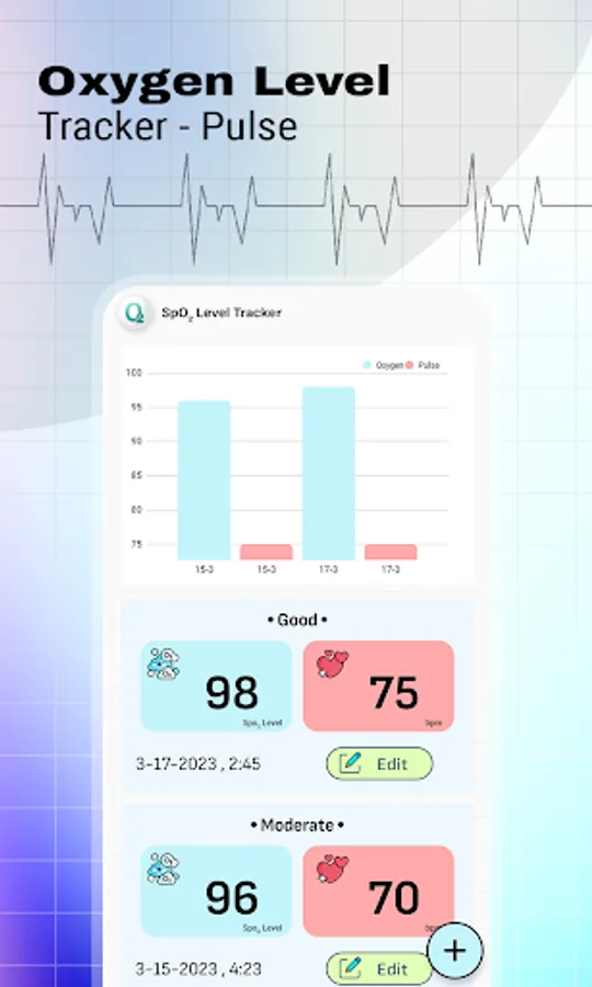 Once the Pulse Oximeter measurement is complete, Get SpO2 levels that add your data in the app then app displays your SpO2 levels as a percentage on the screen. Additionally, the app provides a chart that displays your SpO2 levels over time, allowing you to track and monitor any changes in your oxygen saturation levels.