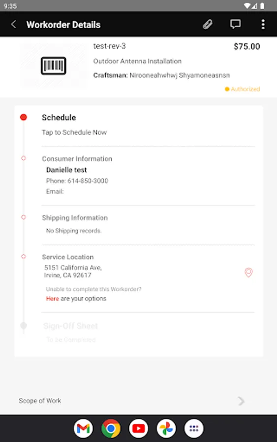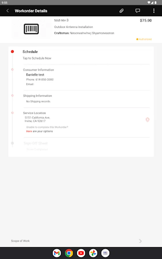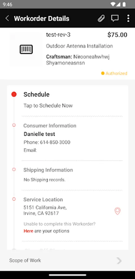 • Access full Workorder details, including Scope of Work and Consumer contact information