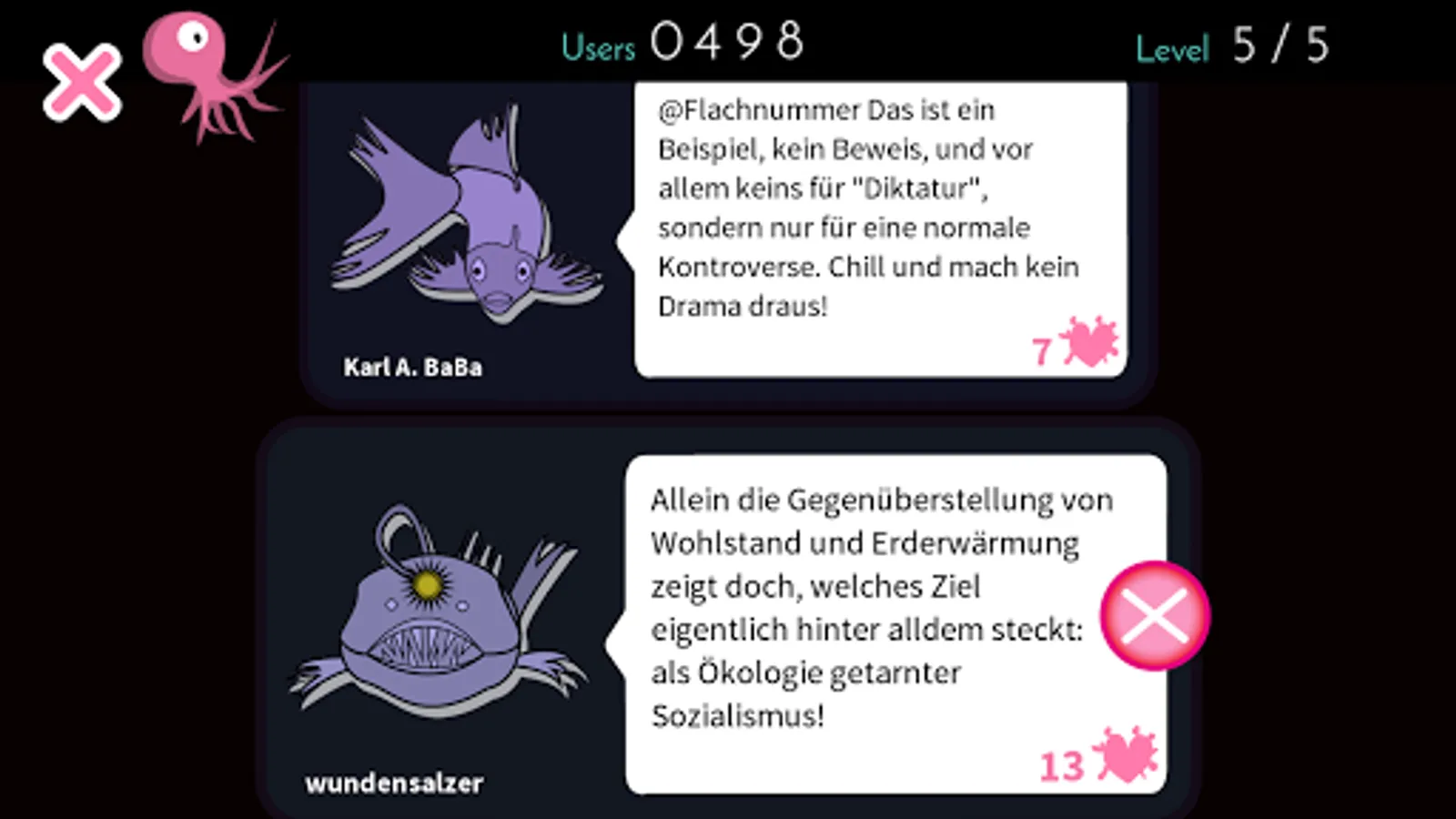 Moderate on the fictional social network “Cuddlefish” by deleting inappropriate comments!