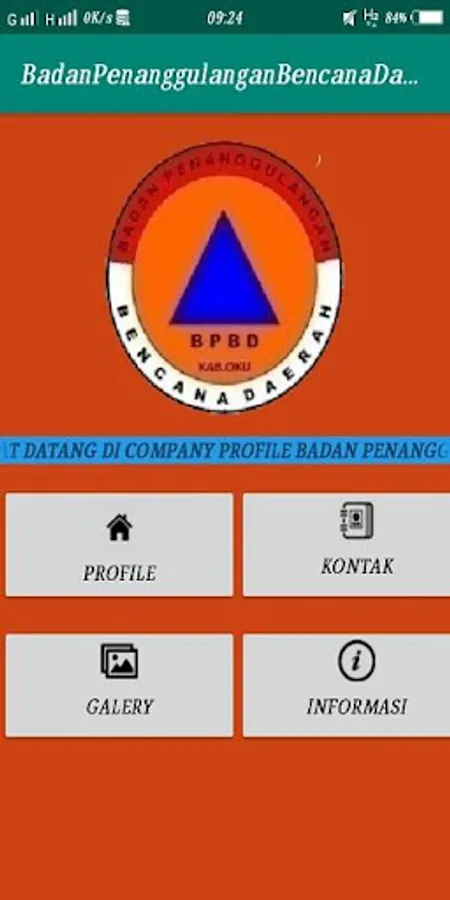 This company profile is equipped with a profile containing history, vision, mission, organizational structure, contacts, gallery, and information that contains public complaints to the bpbd kab oku office.