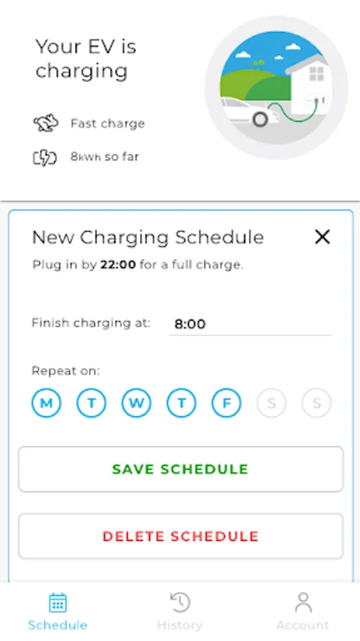 - Use advanced schedules to take full control of all settings: start time, end time, speed of charge & kWh limit.