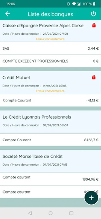 See your bank account balances (business and personal) at a glance. You can also view the latest transactions for each account. The number of accounts is unlimited.