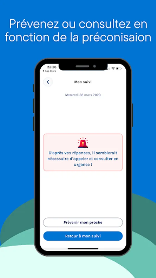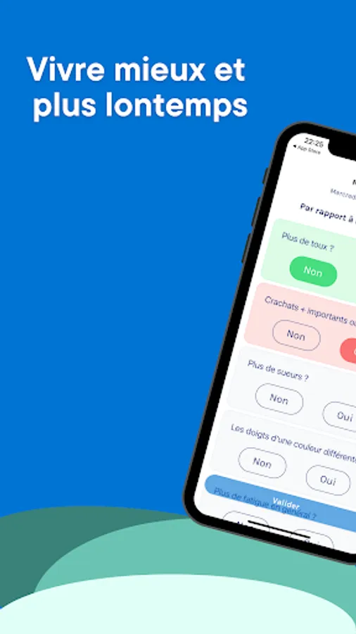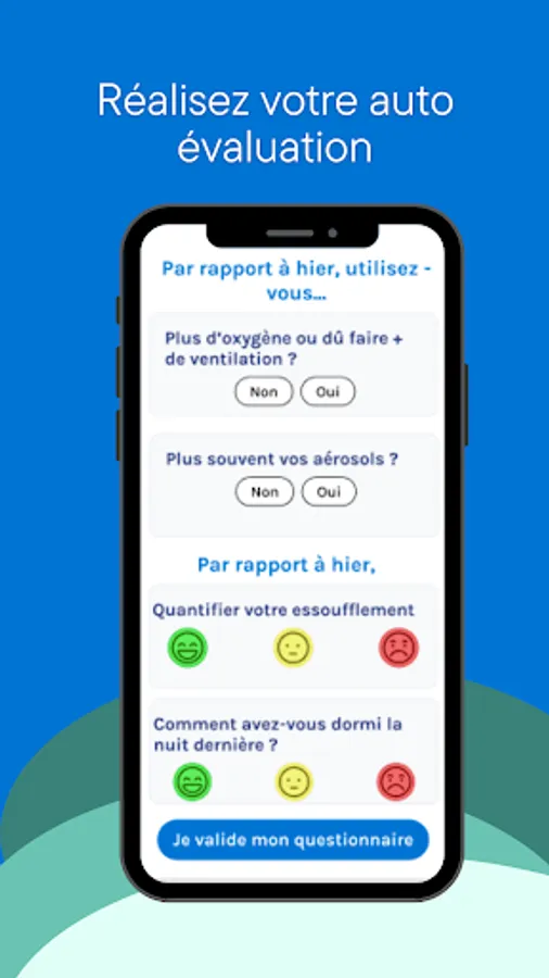 - Recommendation on the management of an aggravation: The application provides recommendations according to the answers to the self-questionnaire, in particular the need to resort to a consultation more or less urgently. These recommendations can help patients better manage possible respiratory aggravation.