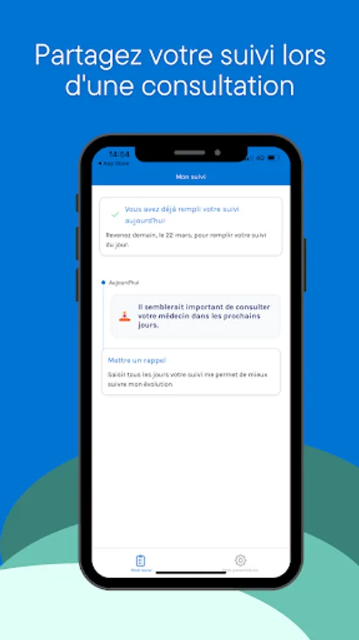 - Follow-up of answers to questionnaires: Patients can follow the evolution of their answers over time by visualizing in a very concrete way the aggravations. This can help them understand their condition and better manage their disease. They can also share these results with their healthcare professionals during consultation.