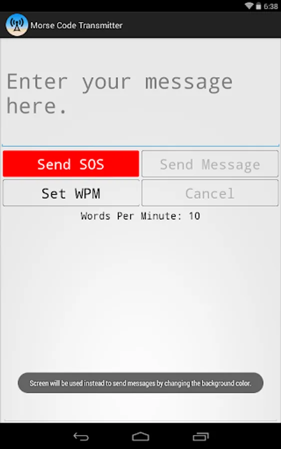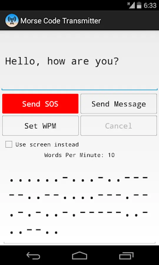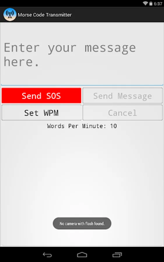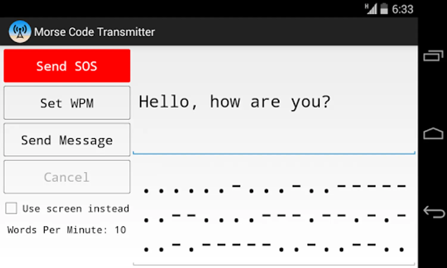 This app will use the camera flash on your smartphone or tablet to transmit messages in Morse code. The best part is, you don't have to know Morse code to use it! Just type your message, and the app will take care of sending it for you. If you want to see what your message looks like in Morse code, simply look at the dots and dashes that appear at the bottom of the screen.