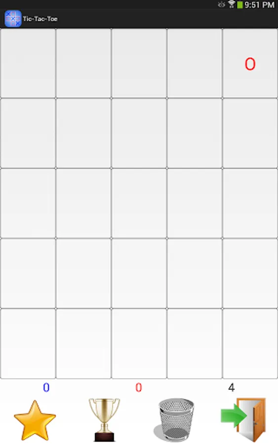 The objective of the game is to get three, four, or five X's in a row (horizontally, vertically, or diagonally) before the computer gets the same number of O's in a row.