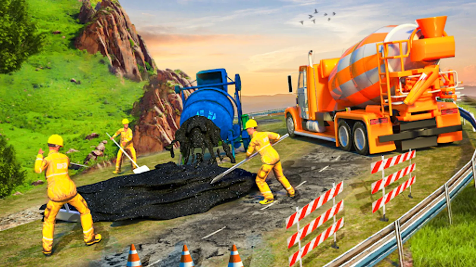 Realistic road builder gameplay with real truck engine & crane physics