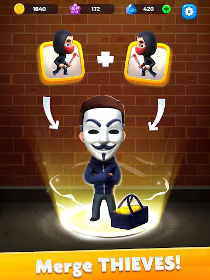 Moreover, it's not just an idle money clicker. Are you a fan of merge robber games? Do you like to merge dragons, planes, goblins, plants, food, or maybe merge people? In our bank heist simulation game you got to merge burglars!