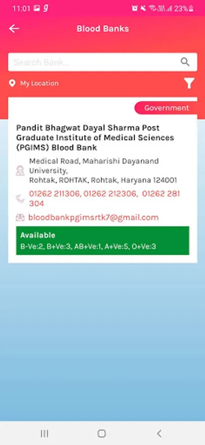 RaktDaan app allows users to search blood banks nation-wide. Details of blood bank are displayed based on user’s current location and showing the nearest blood banks and check the availability of the blood. Users can also search for blood banks by selecting particular State/District. Through this app users can call or send an email to the selected blood bank, and can get navigation directions, distance to any selected blood bank.