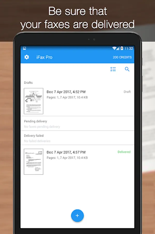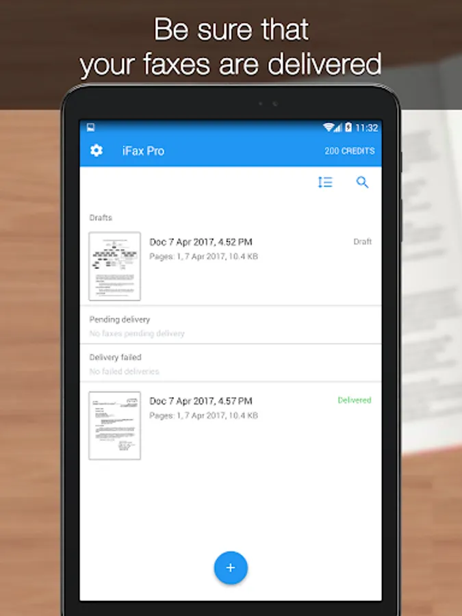 Note: Please purchase app сredits to start sending faxes.