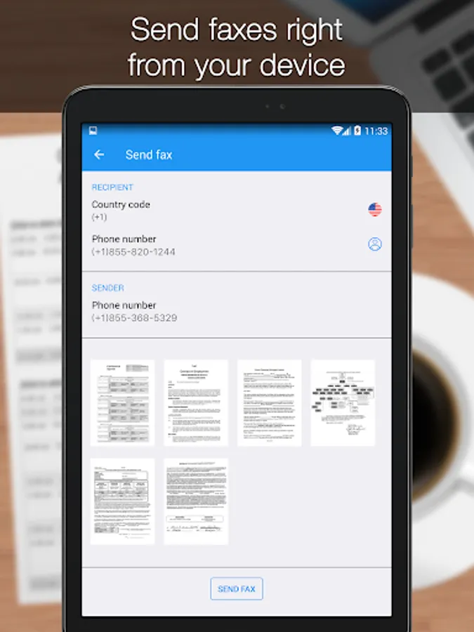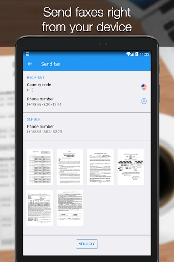 Turn your Android device into a powerful fax machine! Scan any documents with advanced document scanner and fax them anywhere in the world in few taps!