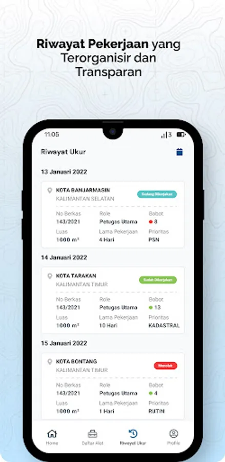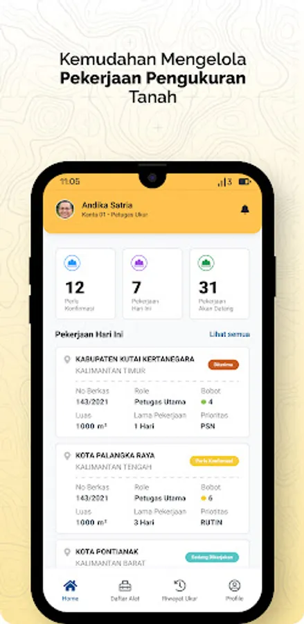 Ready to Measure is a mobile application that aims to assist in facilitating the management of measurement files within the regional office of the National Land Agency for East Kalimantan Province. Ready to Measure is the work of the Land Data Clinic Team for the BPN Regional Office of East Kalimantan Province which provides various features for ease of measurement as well as the preparation of reports on land measurement results.