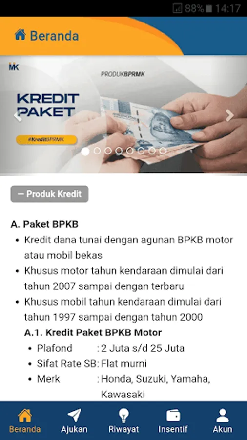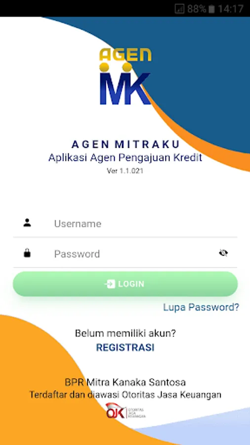 MitraKu Agent - Credit Loan is an official application that is used to become an agent for PT. BPR Mitra Kanaka Santosa in applying for credit loans online. Agents consist of freelance agents and agents who are members of a company that has collaborated with PT. BPR Mitra Kanaka Santosa. Submission of credit loans for the Kab. Bandung, Kab. West Bandung, Bandung City, Cimahi City.