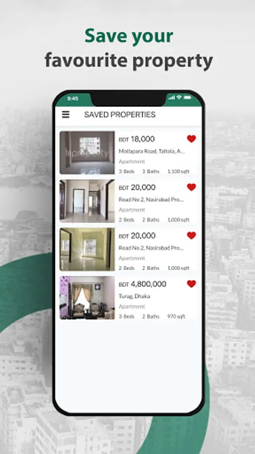 The Bproperty App connects you with a huge database of active properties from all over Bangladesh, allowing you to find apartments, plots, offices and shops – whether for sale or for rent – on the go.
