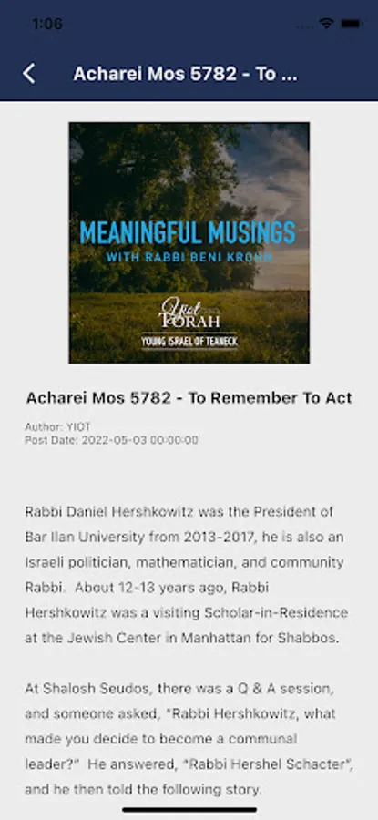 In addition to his role at YIOT, Rabbi Krohn serves as a Mashgiach Ruchani at Yeshiva University and as an instructor in the Professional Rabbinics Program at RIETS.