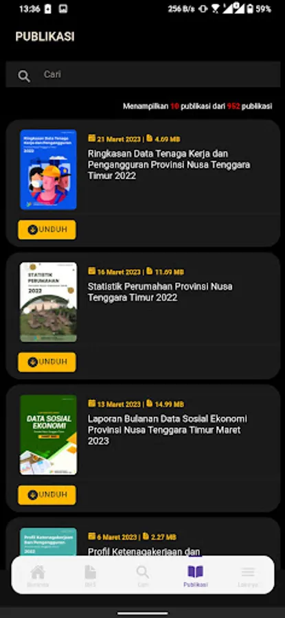 This application can also be used by users to request/consult data with BPS NTT Province employees via WhatsApp which can be used via the Contact Us menu. In the SI INARAGIS application, users can download publications/official news statistics (BRS) produced by the BPS Province of NTT.