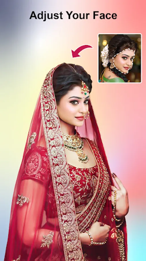 Royal bridal makeup photo editor with dress is a wonderful app for girls with old faces, as our photo filter works well to convert old faces to a young face. A great collection of bridal suit is available for a stylish girl. Imagine like a real bridal with an amazing photography montage app. Royal bridal photo suite editor app is one of the most photo montage app for face changer in bridal dress photo editor. Whether it's your own wedding or beasties wedding, check royal's celebrity photo and show it to groom. Royal photo maker app let's allow you to wear jewelry of gold for turn your look into a beautiful face through the wedding dresses face editor app.