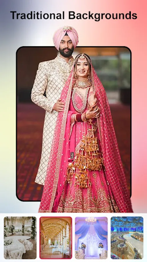 It's just not a royal marriage ceremony photo editing app but it allows you to choose different wedding montage, making it easier for you to have contrast or match with royal wedding montage hall. Take photos either from camera or from the gallery and check unique bridal dresses, also judge the wedding red dress for a better look.