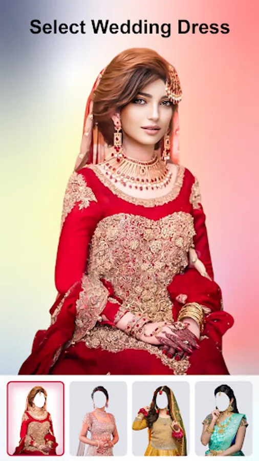 Using bridal dress photo editor app you can make eyes color as you like. Royal bridal photo suits gallery of the app has a wide variety of royal bridal clothes so that you can choose the perfect wedding bridal suit design.