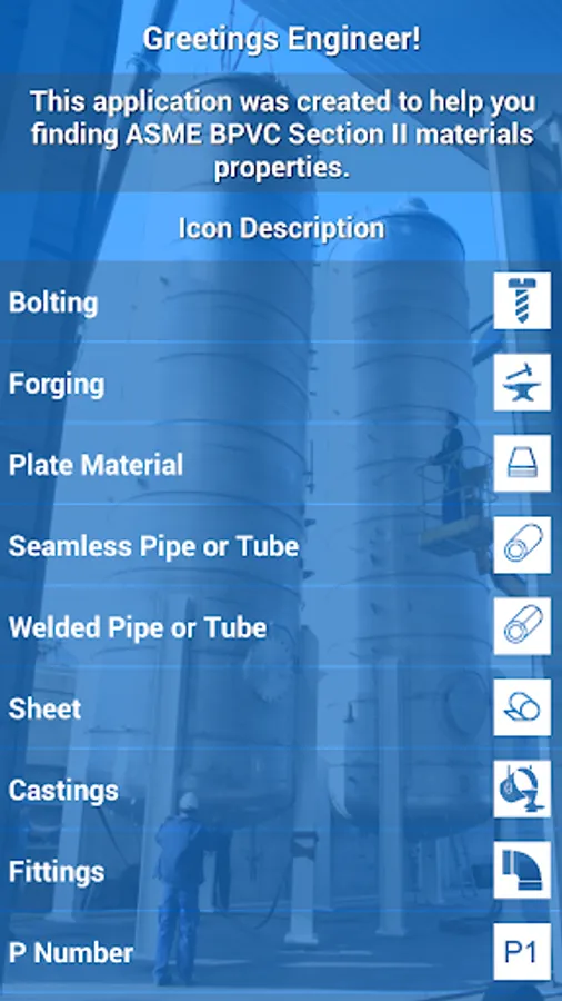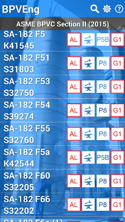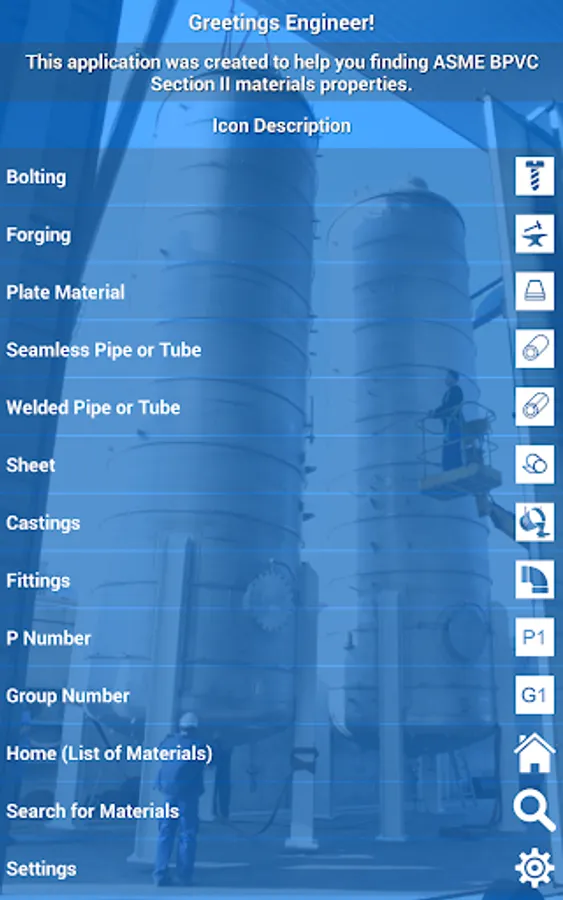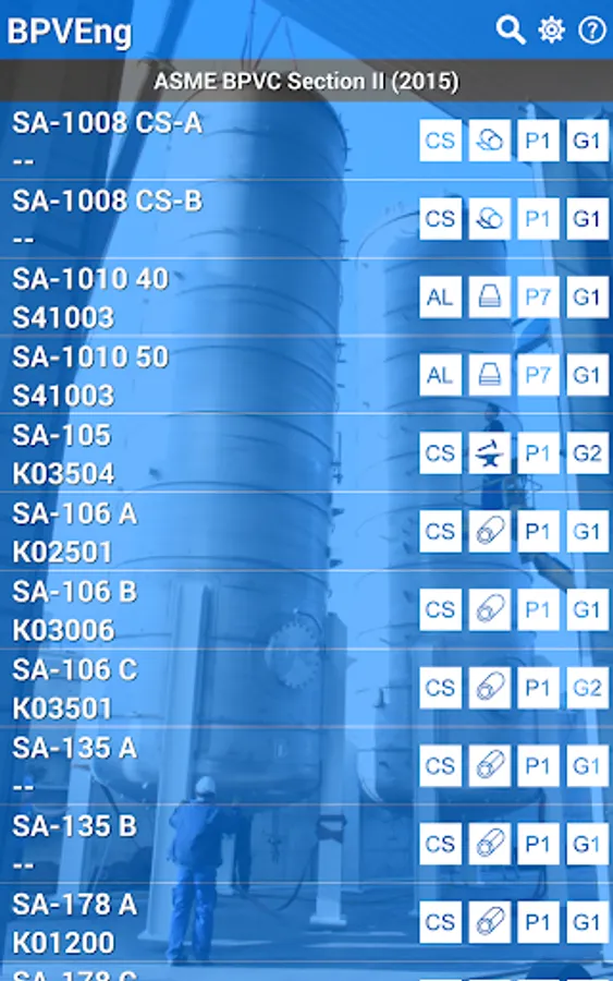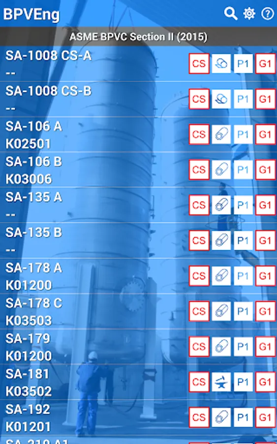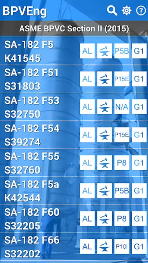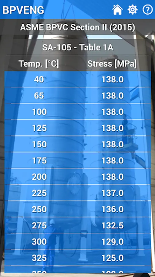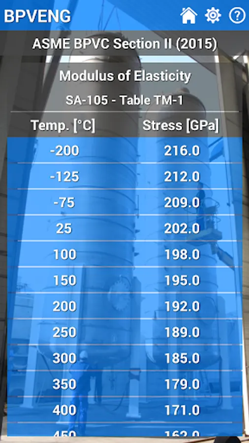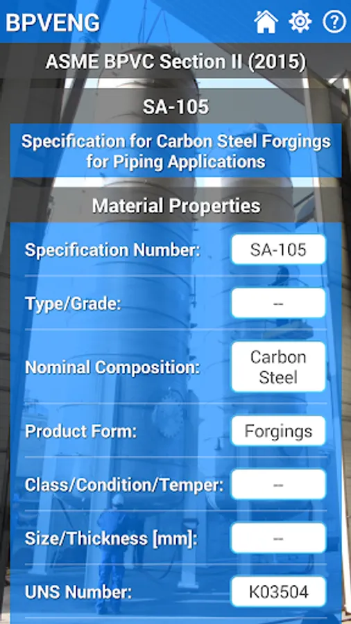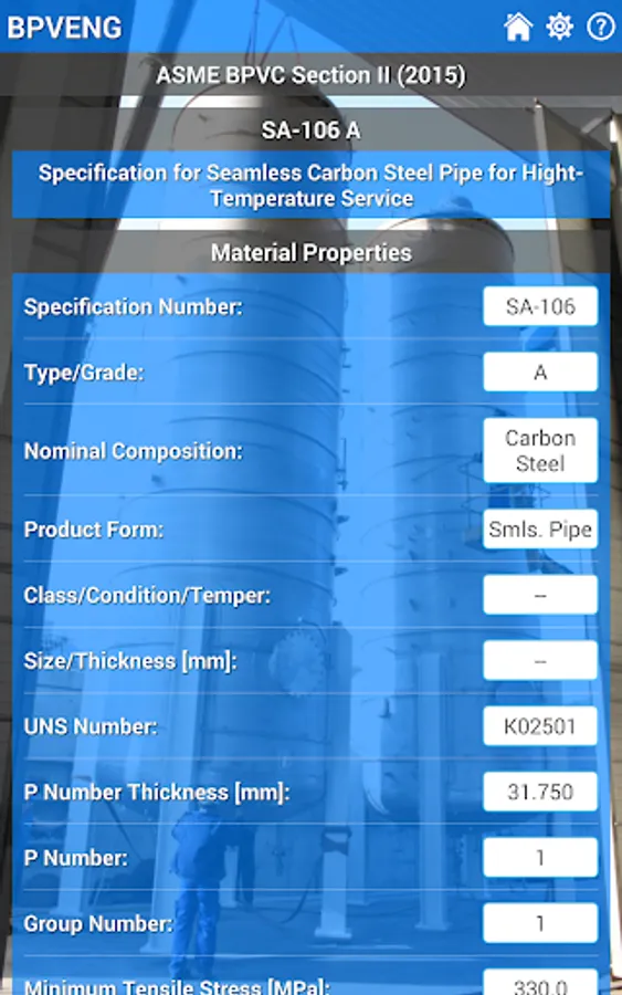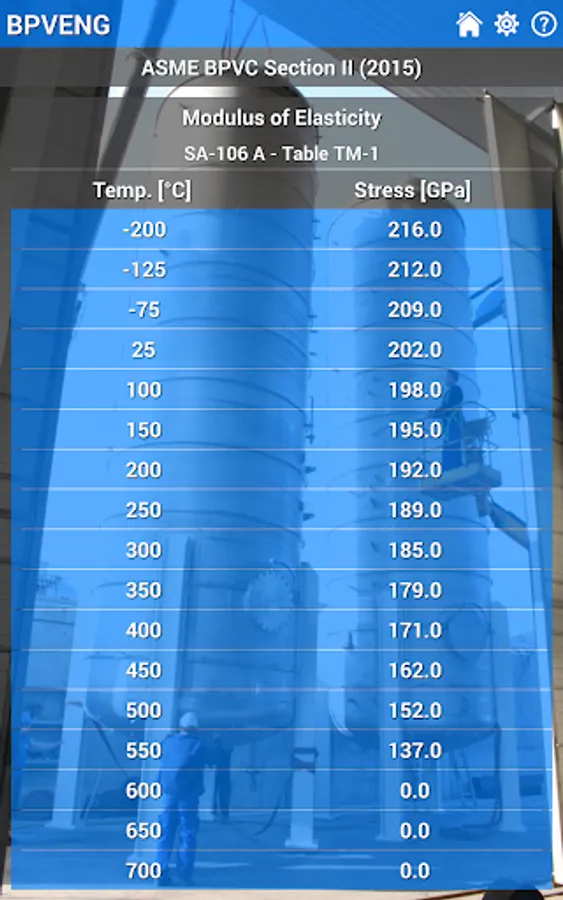 This application is a database of materials based in the ASME Boiler and Pressure Vessel Code (or simply BPVC) Section II (2015), which is used by the others sections of the same code, like Section III, Section VIII, and so on.