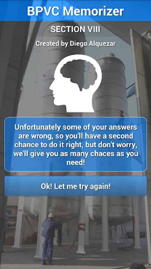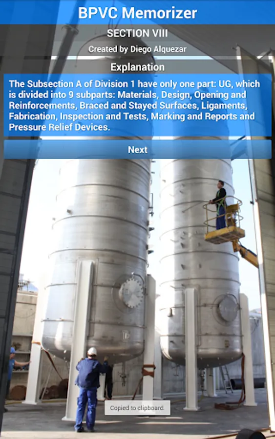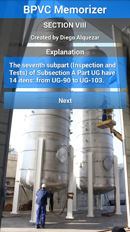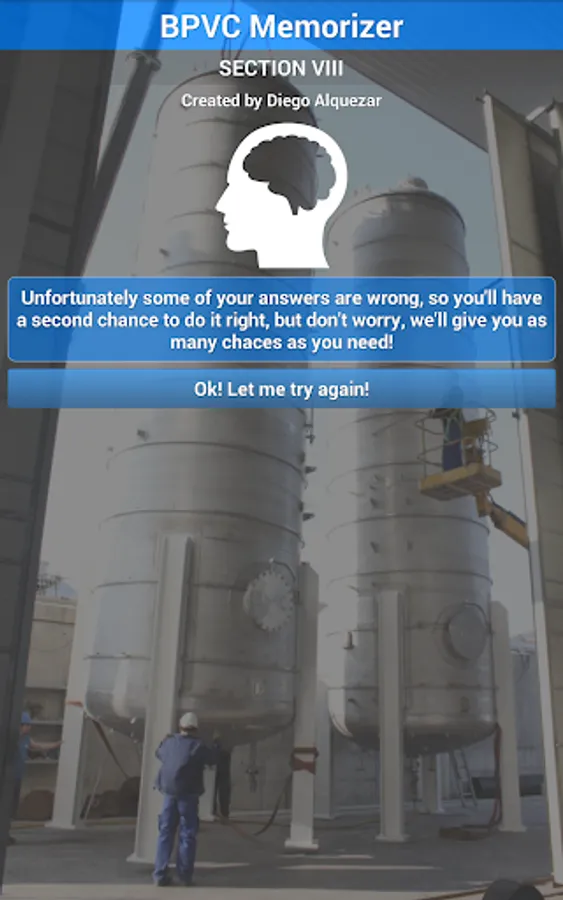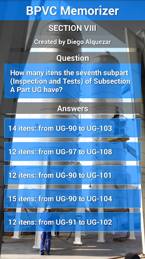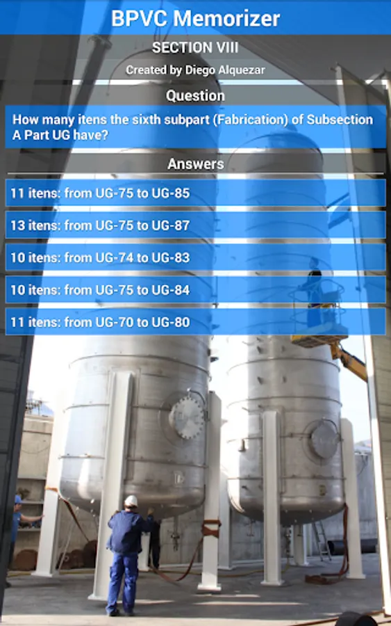 This application was developed to help engineers and students memorize and understand the ASME Boiler and Pressure Vessel Code.