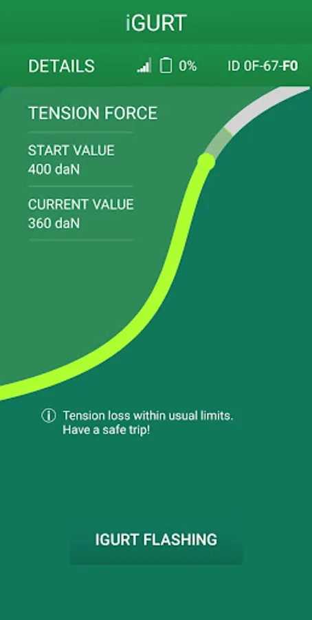 The handy device can easily be fastened to the lashing strap, making the one-off set-up on the vehicle's lashing straps a quick process. All of the devices in use show the respective preload force on their housing and also send the data to the driver’s smartphone via bluetooth. If one of the lashing straps becomes loose, the iGurt system smartphone app immediately sounds an alarm. An excessive preload force, which might damage a susceptible load, is also displayed.