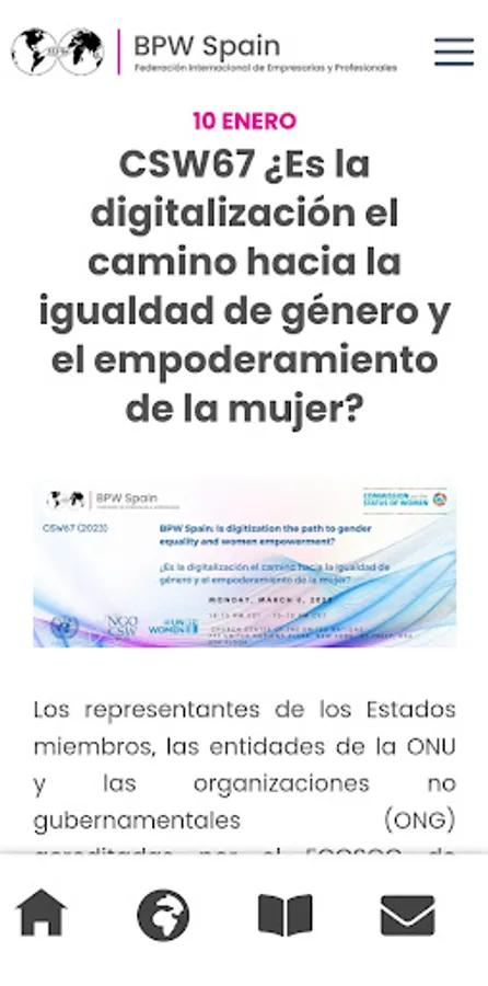 We are an organization that brings together the BPW clubs in Spain, and which is characterized by being a non-profit, non-racist, non-denominational and non-partisan association.