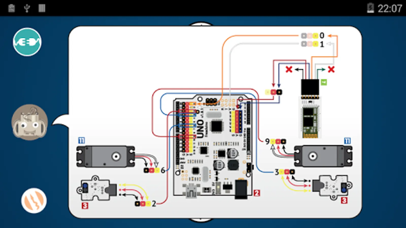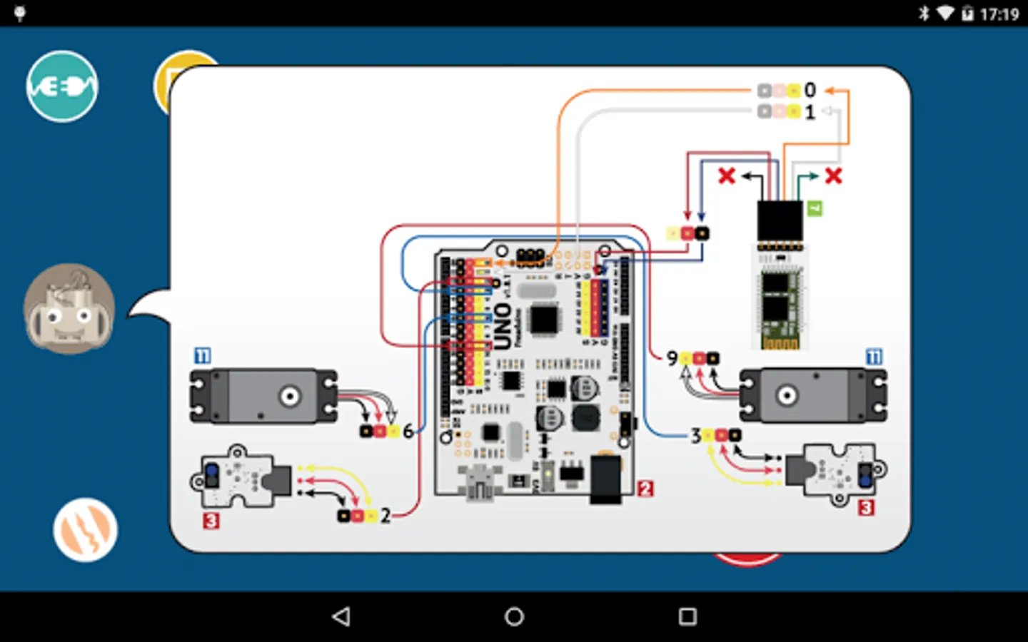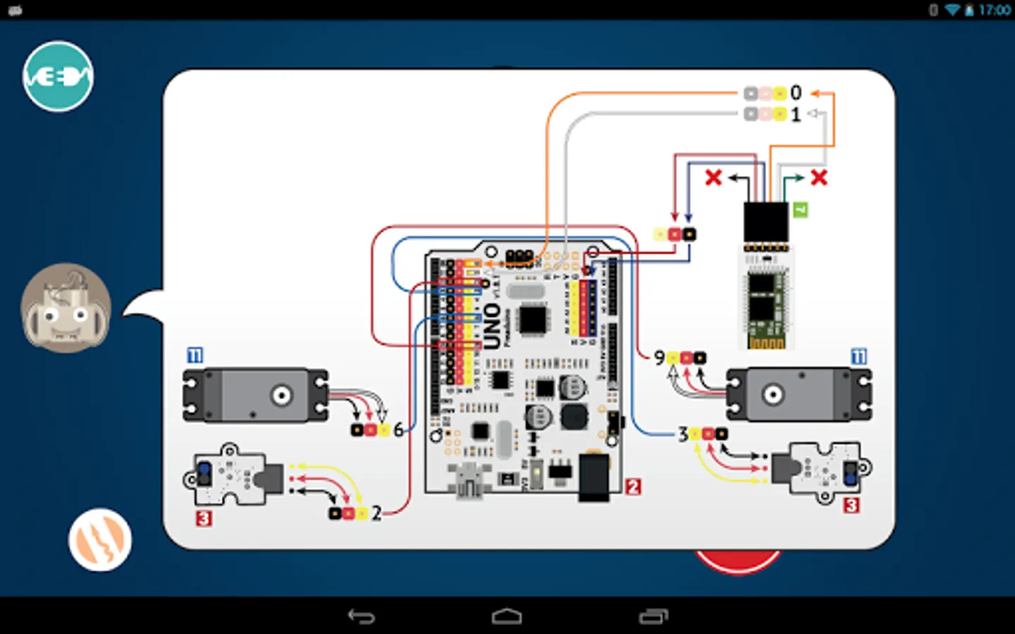 You can see a schematic of the connections at any time by clicking on the icon of the robot.