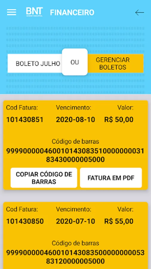 With the BNT Fibra app you can consult information regarding your plans and services, view your invoices and download your bills, in addition to requesting technical support directly through the APP.