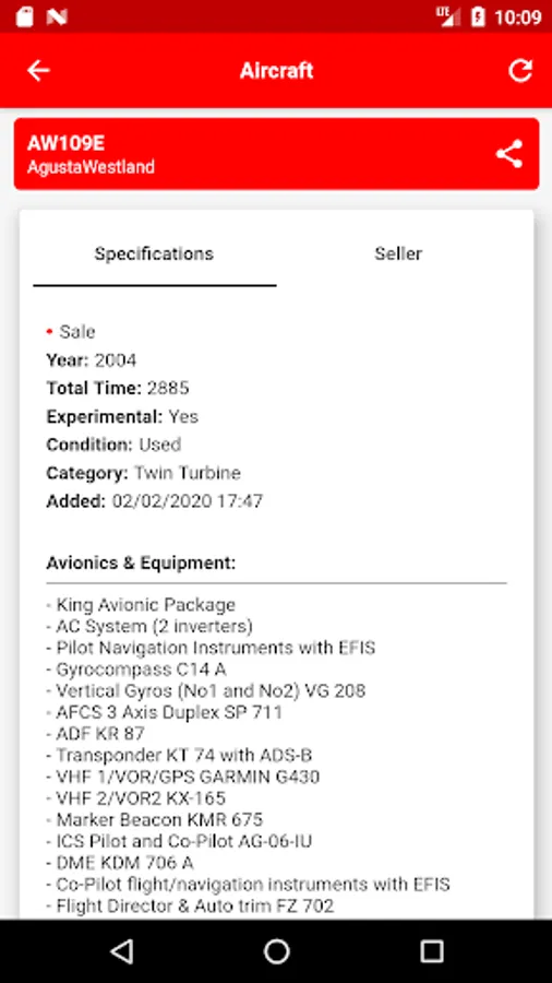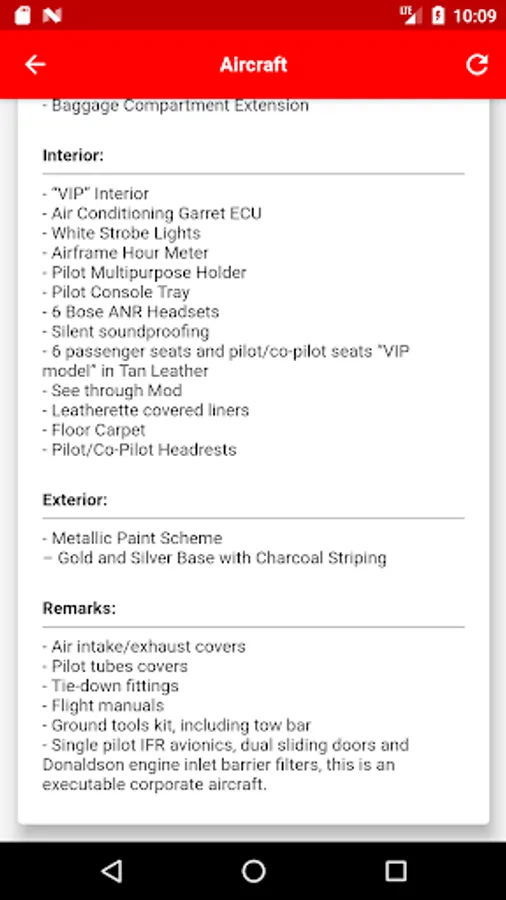 - Full description, with photos, equipment, avionics, interior, exterior and remarks.