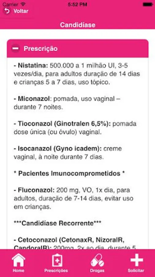 The Medical Prescriptions application in gynecology is launched in order to provide prescriptions for medications and treatments commonly used for each disease didactic and focused on daily practice.