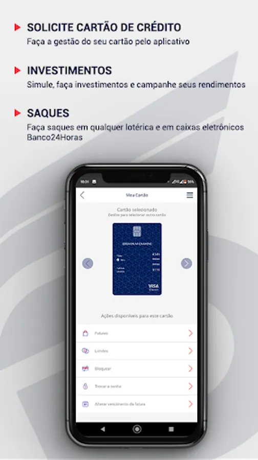 - The management of your credit card expenses and bill payment are also possible by the app, plus you have at disposal all the benefits that the banner of your card provides to you.