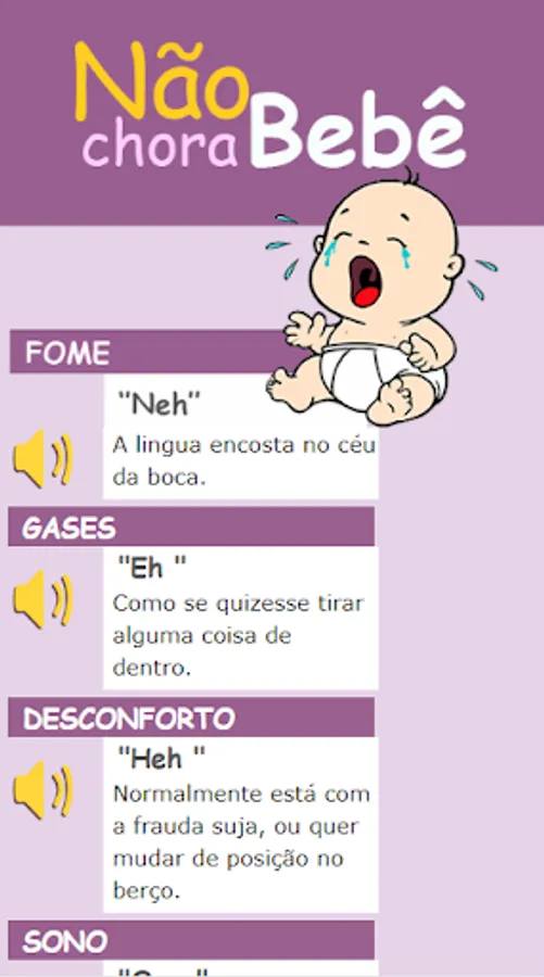 Baby crying stands out among the initial behaviors due to its central role in the child's survival, health and development. The sound of crying is composed of a myriad of temporal and acoustic characteristics that work like a biological siren, a signal that alerts and motivates the caregiver to meet the baby's needs. The perceived meaning and the response to this biological siren vary depending on the specific combination of acoustic properties that make up crying. For example, crying with a faster repetition rate, shorter expirations and pauses, and a higher pitch frequency (basic frequency) can induce more urgent caregiver responses to the baby's request than other cries with other acoustic characteristics. For this reason, the sound of the baby's cry plays an important role in the development of babies at risk of unsatisfactory psychosocial results due to conditions existing in the prenatal period and other conditions adverse to the neurobehavioral organization.