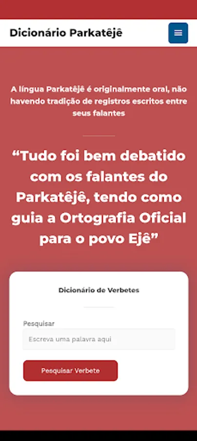 Electronic version of the "Dicionário Parkatêjê-Português", authored by Leopoldina de Araújo©, also available at https://dicionarioparkateje.com.br/. Consultation of the dictionary is completely free, online, and oriented mainly to indigenous communities in general and to teachers and researchers of indigenous languages and cultures.