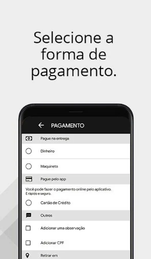 4 - Escolha a forma de pagamento e finalize o seu pedido.