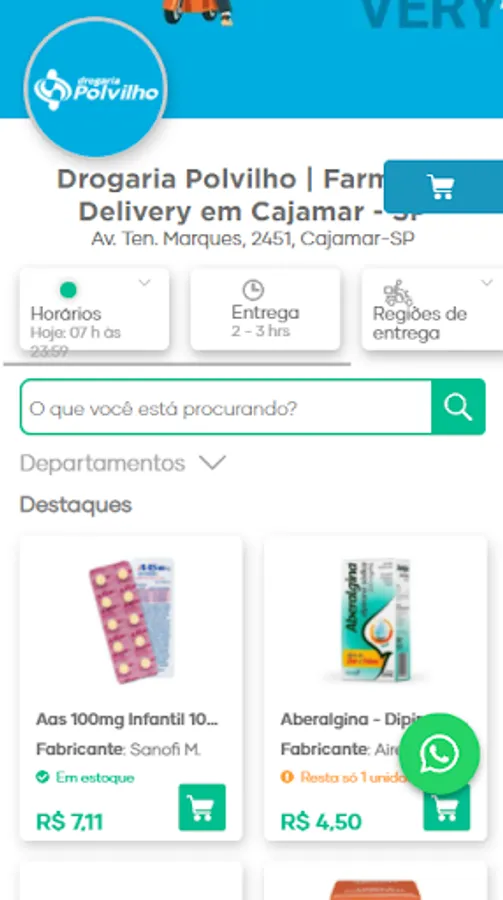 Application Pharmacy Delivery in Cajamar is Drogaria Polvilho! Order your pharmacy delivery in a few clicks, without having to log in or register! Pharmacy delivery with the easiest app and products 100% synchronized with stock and prices in the physical store!