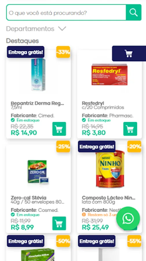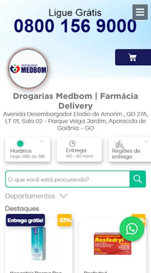 Pharmacy Delivery application in Aparecida de Goiânia is Medbom! Order your pharmacy delivery in a few clicks, without having to log in or sign up for a long time! Pharmacy delivery with the easiest app and products 100% synchronized with stock and physical store prices!