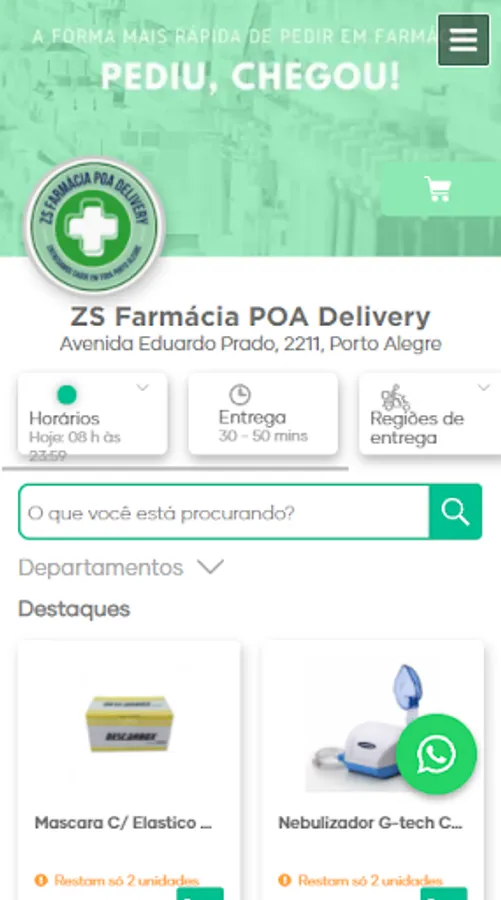Pharmacy Delivery application in Porto Alegre is ZS Pharmacy POA Delivery! Order your pharmacy delivery in a few clicks, without having to log in or register! Pharmacy delivery with the easiest app and products 100% synchronized with stock and prices in the physical store!