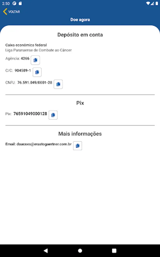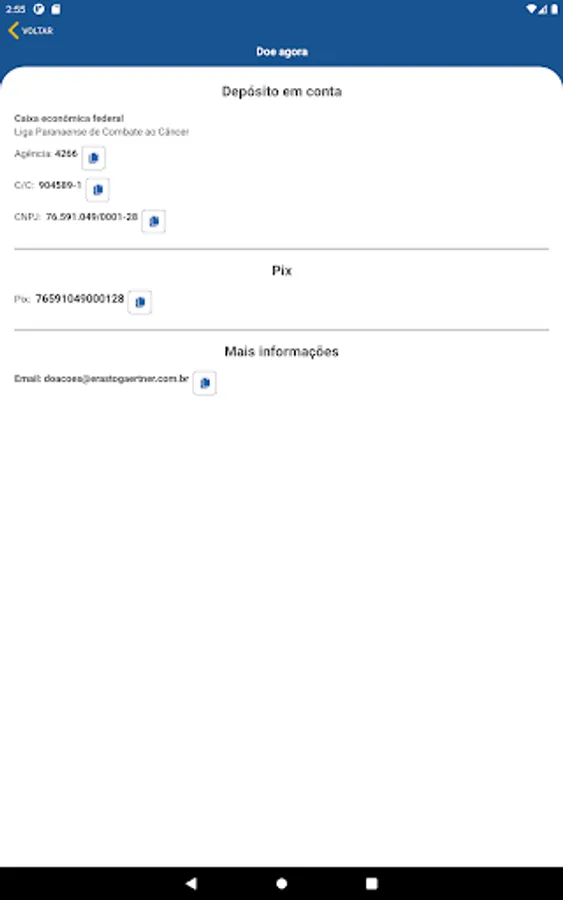 If you want to donate to the institution, find the details for depositing in an account or Pix.