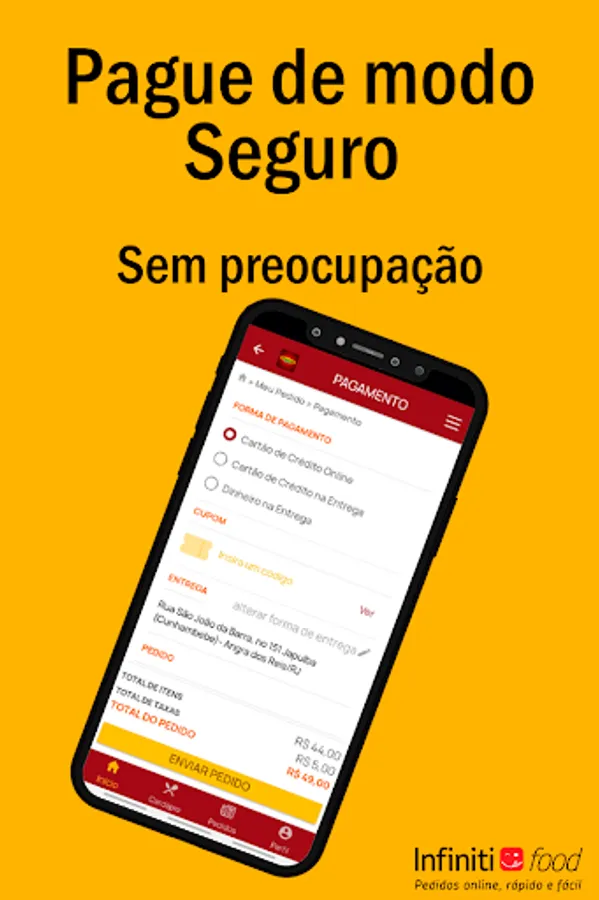 Pay online for the app or on delivery. Here's the tip: paying for the app is practical, safe and faster.